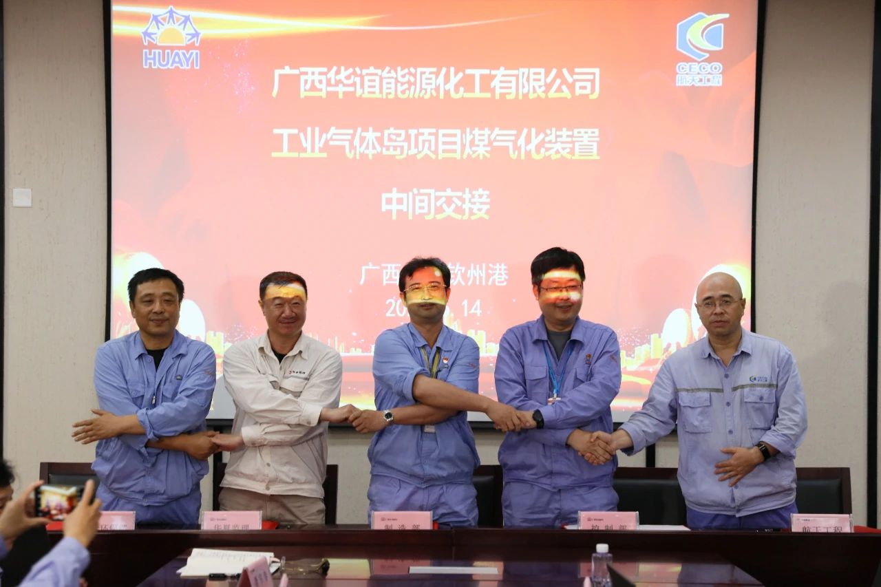 2021年06月14日下午01:00,广西华谊能源化工有限公司在行政中心第一会议室举行了煤气化装置、卸储煤装置中交仪式。广西华谊能源化工有限公司工业气体岛项目各职能部门、开云登陆入口、航天长征化学工程股份有限公司、华电重工股份有限公司等单位代表参加此次仪式。会上广西能化制造部、安全环保部、控制部、监理单位、EPC承包商五方在中交证书上签字。